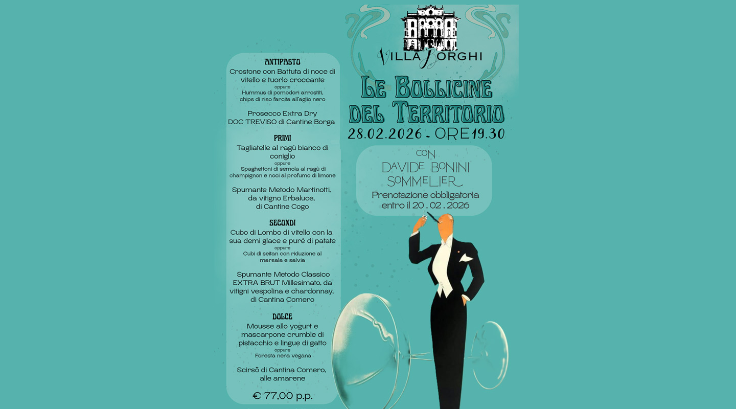 Una Cena di Gala dedicata alle Bollicine, dove ogni calice accompagna un menu esclusivo creato per l’occasione. Un’esperienza gastronomica raffinata, immersa in un’atmosfera suggestiva e indimenticabile.